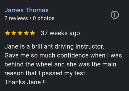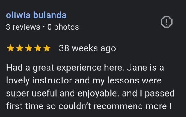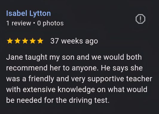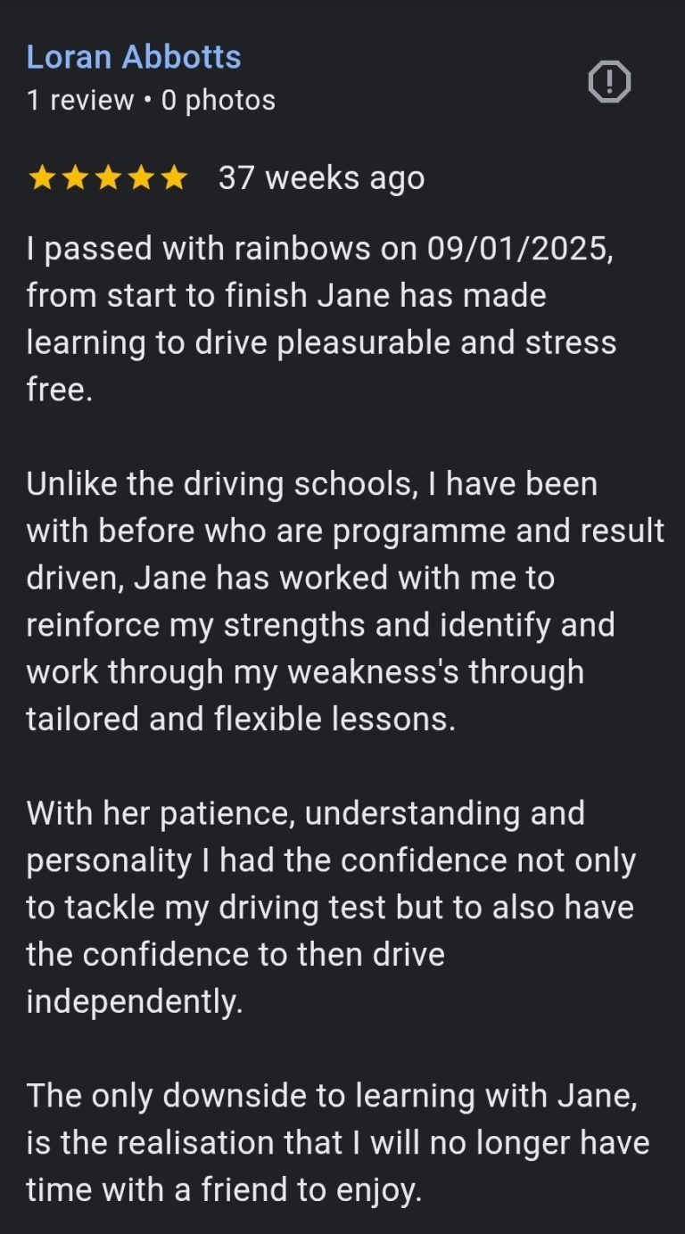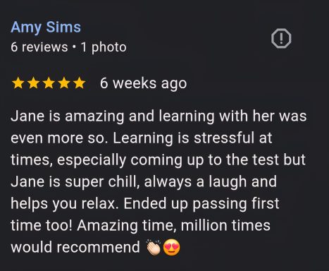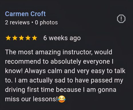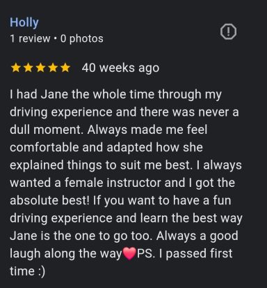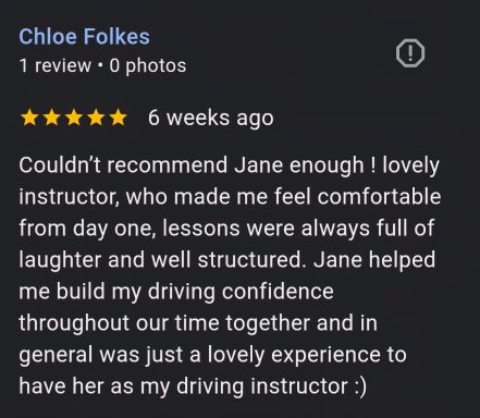 Our female driving instructor uses a friendly approach creating a comfortable learning environment.
