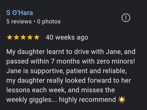 Unlock your potential with personalized driving lessons with an experienced female instructor.